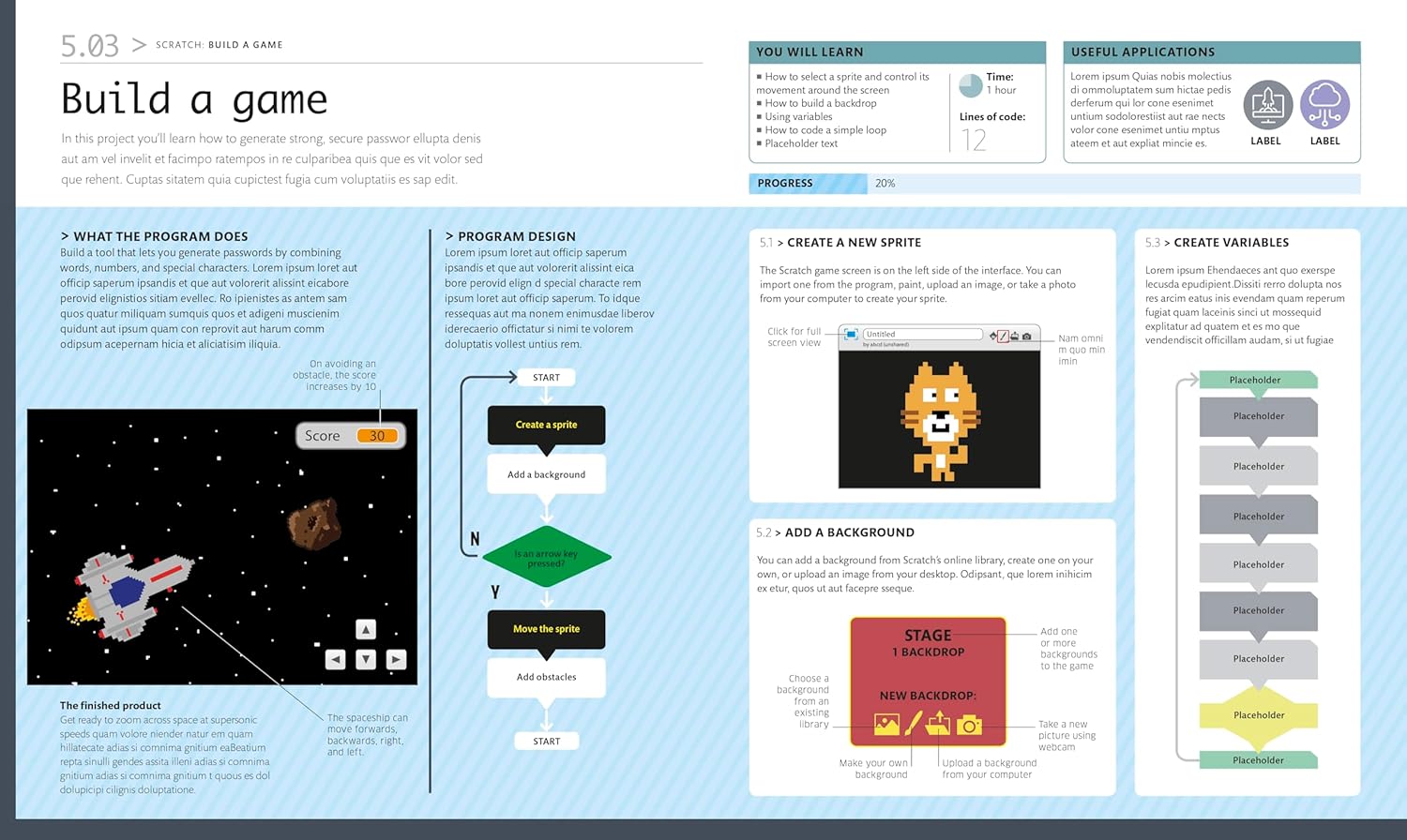 You’ll learn to think like a programmer by breaking a problem down into parts, before turning those parts into lines of code. Short, easy-to-follow steps then show you, piece by piece, how to build a complete program. There are challenges for you to tackle to build your confidence before moving on.